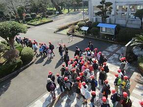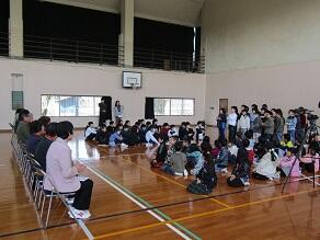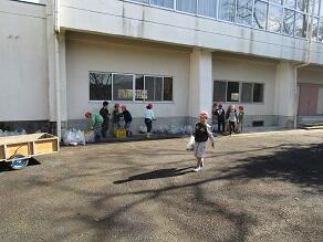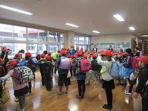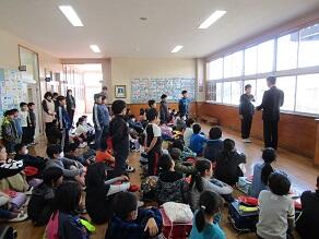 緊急放送の後、全児童がオープンフロアに集合し、保護者の方の迎えを待ちました。その後、14時40分から次々とお迎えの車が紙屋小に到着し、15時15分には全員、保護者への引き渡しを終えることができました。