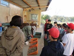 11月29日(木) この日は6月に植えた、サツマイモの収穫をしました。JA青年部の方や保護者の方の協力を得て、1~3年生が活動しました。今年のサツマイモの育ちはとても良く、大きなイモを掘り出すたびに子どもたちから歓声があがりました。子どもたちは楽しくイモ掘りをしました。3年生が収穫したイモを学年ごとに仕分けしてくれました。子どもたちは大きなイモの袋をかついで(^^)帰ったようです。お家でしばらく保管した後に食べるとより美味しくいただけるそうです。ちなみにサツマイモの種類は「紅はるか」だそうです。最近は焼き芋のブームらしいですね。庭で焼き芋!なんていうのも季節感があっていいですね(^_^)v 協力していただいたJAや保護者の方々、ありがとうございました。