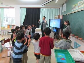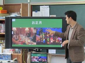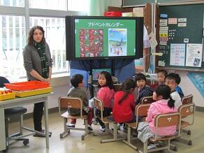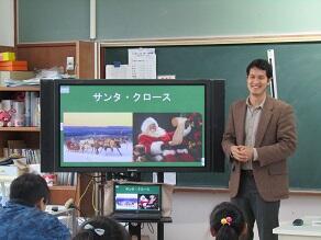 12月21日(金) この日は冬休み前、最後の授業日でした。外国語活動(ALT訪問)も今年最後の授業でした。いつものようにALTのクリストファーさんが来校されての外国語活動でした。内容はというと、この時期はやはり、クリスマスですよね~(^^)メロンさんのフランスのクリスマスとはちょっと違っているようですね。サンタ、アドベントカレンダー、プレゼント、などは同じでした。子どもたちは外国の文化の紹介を通して、外国の文化に触れることはもちろん、外国語にも触れているのです。英語の単語など、少しは覚えたでしょうか?日頃から少しでもいいから使うと忘れないのですけどね・・・。あいさつなどをしてみましょう、英語で! メリークリスマス!とか、あけましておめでとう!なども英語で言ってみよう!ALTのクリストファーさん、今年もいろいろなことを学習しました。お世話になりました。また、来年もよろしくお願いいたします。少し早いですが、よい、年をお迎えください!