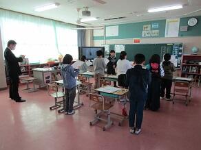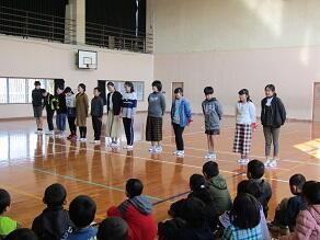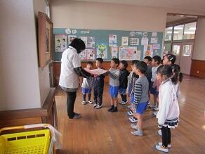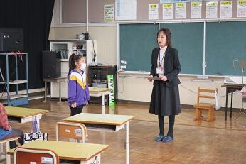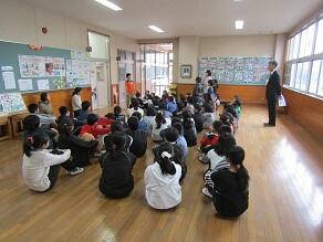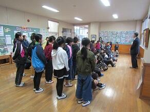 11月21日(水) この日の集団下校の会で、先週木曜日から山田先生に代わって勤務されていらっしゃる上園先生と子どもたちとの対面を行いました。上園先生は保健師や看護師の免許も持っていらっしゃいます。お若いですが、頼りになる先生です。学校で働かれるのは初めてだそうですが、子どもたちにもすぐに慣れ、子どもたちもすぐに仲良くなることでしょう。上園先生、よろしくお願いいたします。