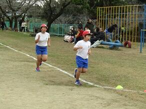 ・途中の様子です。  2年生、接戦です。      ・4年生、がんばれ!              ・6年生、保護者の前を走ります!