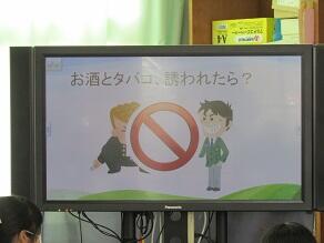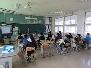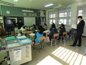 ・講師の方々です。                ・租税教室の始まりです。             ・DVDやプレゼンを使っての学習です。
