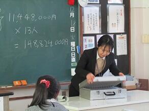 12月18日(火) この日は租税教室がありました。小林市の県税事務所に講師をお願いし、6年生向けに租税教室を行いました。子どもたちにとっては、「税」ってほとんど関心のないものです。しかし、税がないと大変な世の中になります。この日の教室の内容は、税がなかったら・・・。というDVDを見て、考えました。税金がなかったら、今、当たり前に過ごしている日常生活が大きく変わってきます。たちまち、自分勝手な社会になることでしょう。子どもたちはこの日の学習を通して、税の大切さを知ったようでした。大人の私たちも税の大切さを語っていきたいものですね。小林県税事務所の方々、ありがとうございました。