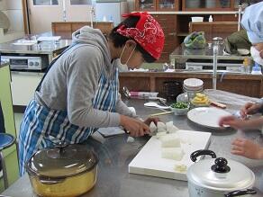 5月30日(木)、5年生は青島青少年自然の家に宿泊学習に来ています。お昼ご飯を食べたらすぐに夕食の準備です。