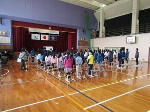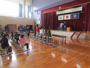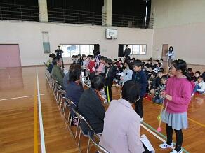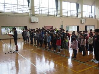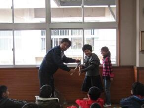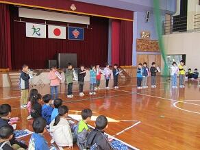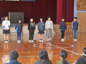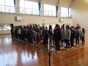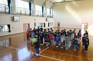 12月21日(金) 同じく、この日は最終日でした。帰る前に全校集会を開きました。はじめに校長先生のお話では、「自分が変わったこと!」について、質問があり、変わった!という子どもたちが手を挙げ、その後、一人ずつ発表しました。今回は6年生がとっても多く立ちました。1年生から順に発表していき、そのたびにみんなから大きな拍手が贈られました。いい光景です!その後、冬休みの生活について、ぜひ、お手伝いをしましょう!、お家の人といっぱい話しましょう!というお話がありました。この一年の感謝と新しい年の思いを込めて過ごして欲しいものです。そして、1月14日(月):成人の日に行われる宮崎県市町村対抗駅伝大会の小林市のメンバーに選ばれた、6年生の紹介がありました。小林市の代表として、しっかり走ってきてください!がんばれ!生徒指導主事の先生からは、冬休みに気をつけることを一文字ずつ示して、お話がありました。これで、学校は終わりますが、また、来年、1月7日(月)に全員、元気な笑顔を見せてくださいね。