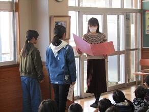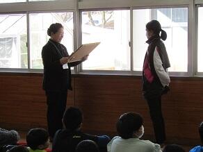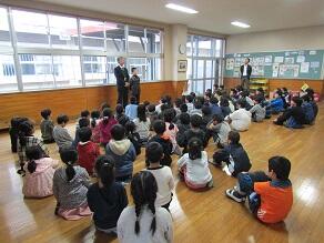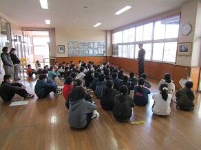 12月12日(水) この日は今年最後の読み聞かせの日でした。今回も“たんぽぽ”の方が来てくださり、3・4年生に読み聞かせをしていただきました。今回の絵本は『ふるやのもり』という本でした。子どもたちは本の世界にのめり込んでいるようでした。“たんぽぽ”の皆さん、毎月の読み聞かせやハートタイムで、いつもいつもたのしい絵本を読んでいただきありがとうございます。来年もよろしくお願いいたします。