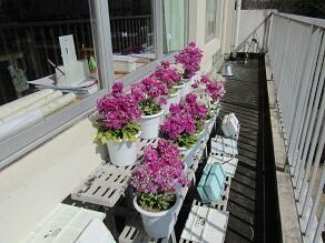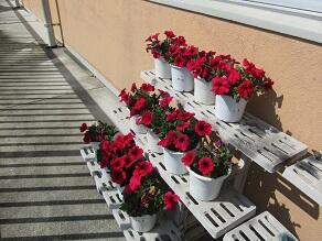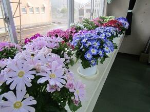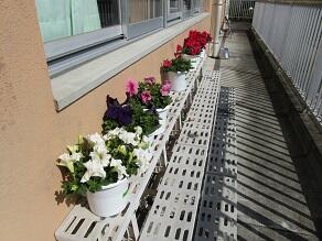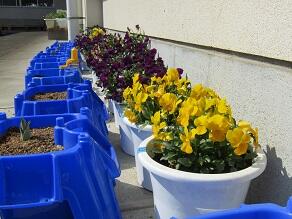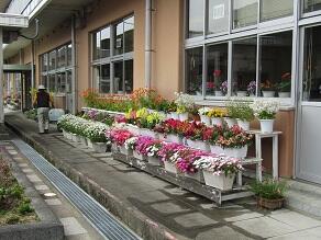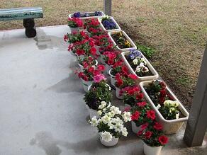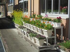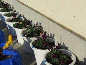 ・一人一鉢活動の花の様子です。学年によって花の種類が違います。ちらほらと咲き始めていました。