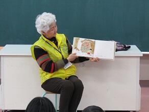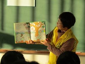そして、楽しみがもう一つ。読み聞かせ「たんぽぽの会」のみなさんによる読み聞かせが全学年で行われました。「たんぽぽの会」の9名の方が来校され、楽しい読み聞かせの時間を過ごしました。