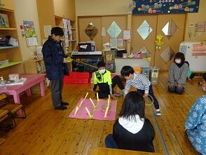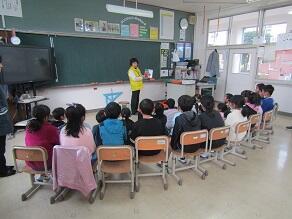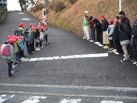 小学校への入学や進級から2ヶ月が経ち、新メンバーでの登下校にも慣れてきた子どもたち。しかし、慣れてきた時期だからこそ油断は禁物です。小林警察署・交通安全協会の方のお話を聞いた後は、安全な道路の横断の仕方を実際に体験しながら交通安全への意識を高めました。