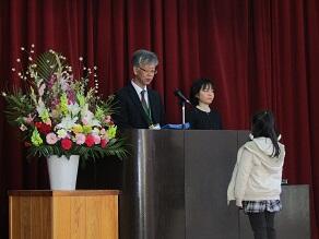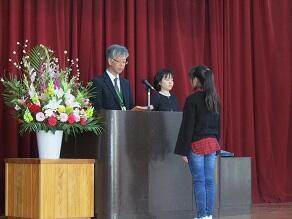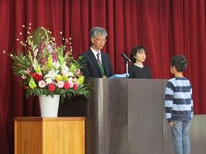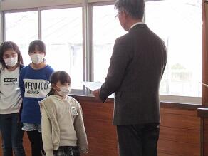 ・もう一つおまけに~ ハイ、パチリ(^^)   ・3人そろって~ハイ、パチリ(*^_^*)          ・児童代表のお礼の言葉です。