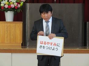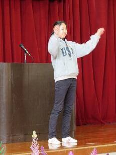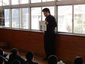 12月5日(水) この日は12月の全校集会がありました。はじめに校長先生から、「ここが変わった!」と言える人!という問に4名の子どもたちが手を挙げました。学習面、生活面、運動面で変わった(成長した)ということでした。まだまだ変わることができますよ!意識して、取り組んでみましょう。次に12月の担当の保健体育部のお話では、保健室の先生から風邪についてのお話がありました。咳やくしゃみをしたら、菌がすごいスピードで、遠くまで飛んで行ってしまう!ということでした。風邪気味の人はマスクを付けることが大事なんですね!うんうん。最後に「風邪の予防」の文字を使ってカルタ形式で予防の方法をお話してくださいました。これからが風邪がはやってくる時期です。予防が一番ですから、みんなで気をつけて過ごしましょう!集会の最後は表彰がありましたので、表彰写真にアップしておきました。また、生徒指導主事の先生からは集団下校の会で、正しい服装についてのお話がありました。気温などに合わせて、調整のできる服装をしましょうね!さあ、あなたは厚着をする方かな?それとも薄着をする方かな?