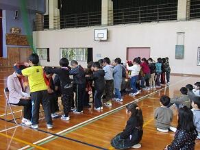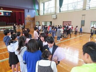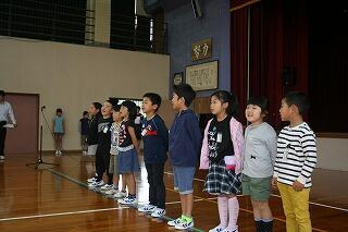 春の遠足の翌日は「1年生を迎える会」で、1年生と全校児童の交流を行いました。初めは緊張気味の1年生でしたが、会が進むにつれてたくさんの笑顔が見られるようになり、みんなで「ジャンケン列車」や「だるまさんが転んだ」を楽しみました。
