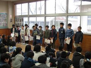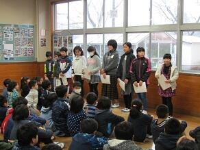 ・「変わったよ!」の発表です。          ・文集「ともだち」の表彰です。          ・紙屋排球女子の表彰です。