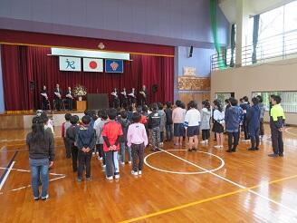 たくさんのイベント続きの今週最後は、小中合同鑑賞教室です。紙屋中学校へ移動して「村上三絃道」のみなさんのステージを楽しみました。「千本桜」などなじみのある曲も披露していただいたり、実際に楽器に触れさせていただいたりして充実した時間となりました。