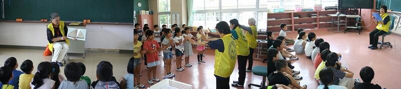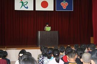 7月10日(水)・・・雨。梅雨の時期は昼休みに運動場で遊べる日も少なくなってしまいます。そんな雨の日に、図書委員会の児童による読み聞かせが昼休み時間に行われました。