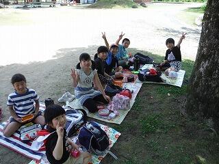 5年生7名、みんな元気に食事作りに取り組み始めました。夕食のカレーライスが楽しみです。まもなく火起こしが始まります。うまく火がつくかな~。