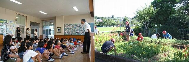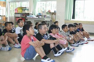 夏休み明け初日は、城攻め踊り保存会の手塚さんによる「城攻め踊りの講話」が行われ、4年生の子ども達は城攻め踊りについての理解を深めました。28日からは4年生から6年生が一緒になっての練習も始まります。これから運動会本番に向けて練習も忙しくなりそうです。