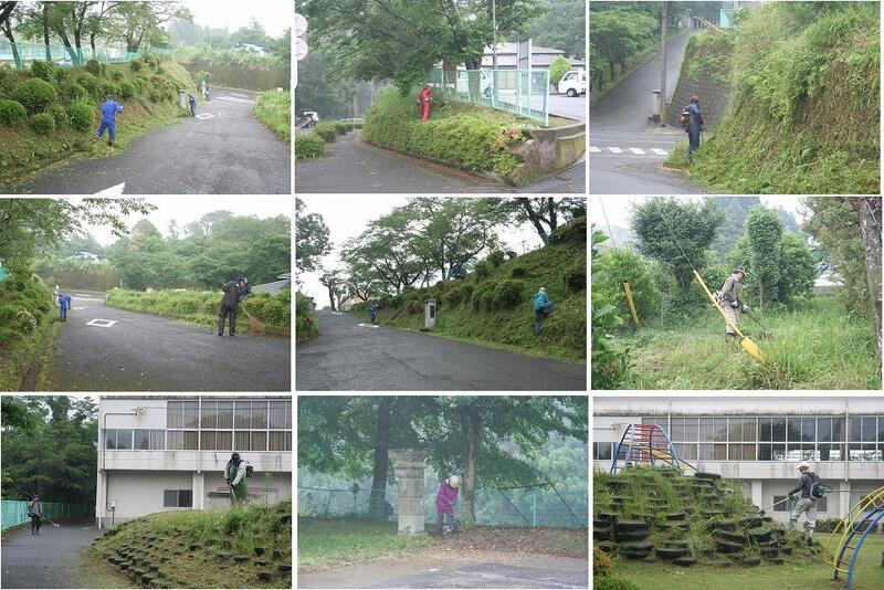雨が降る中、丁寧に草払いや、窓ガラス等をきれいにしていただきありがとうございました。子どもたちもきれいになった環境で、また元気に学校生活を送ることができそうです。