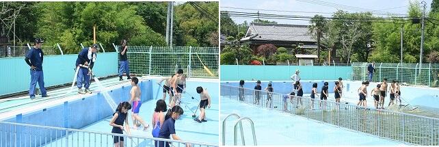 天気も気温も「夏」を感じさせられる日となった6月6日(木)、本年度のプール清掃を実施しました。5・6年の児童がデッキブラシを手にし、冷たい水に歓声を上げながらプールをきれいにしていきました。プール清掃では、消防団の方々にも協力いただき、泥だらけだったプールも2時間ですっかりきれいになりました。17日のプール開きが楽しみです。