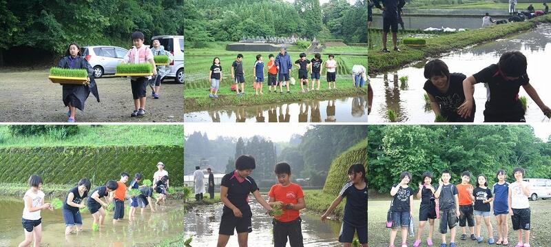 6月8日(金)。午前中は雨が降り続き、予定していた田植えも実施が厳しい状況かと思われましたが、午後になると徐々に天気が回復。今年も無事に5年生の田植えを実施することができました。