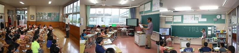 5月27日(月)、第3学年の「こすもす科」でホタルについての学習をしました。小林市商工観光課から2名の外部講師をお招きして、出の山(いでのやま)のホタルについて様々なことを学びました。「なんでホタルってよばれるようになったの?」「ホタルって英語で何?」「日本の東と西で光る時間の間隔が違うって知ってた?」等、クイズを交えながらホタルについての理解を深めていきました。