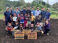 JA青年部の皆さんのご協力のもと、1・2年生が芋ほりをしました。一昨日が雨で中止になったので、今日は芋ほりができてよかったです。赤や白色のサツマイモがたくさんとれました。1・2年生以外の学年もおすそ分けしてもらい、家に持って帰りました。JA青年部の皆さん、本当にありがとうございました。
