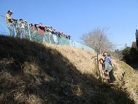 【苗植えの様子】 ・校長先生もお手伝い ・見守る子どもたち