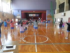 ・準備運動です。 ・講師の田口さんです。メニューもあります。 ・ストレッチ~じゃんけんしてたたきます。