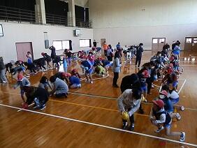 ・寝ている人の上を飛びます。 ・ボールつかみ、間違ったらダメよ! ・おしりでタッチ!
