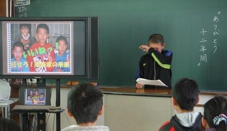 1年生は、季節ごとに体験した学習や学校行事を振り返り、できるようになったことを元気よく。6年生は、生まれたときからのエピソードを交えた保護者への感謝の作文発表・・・思わず涙ぐむ姿も・・・。