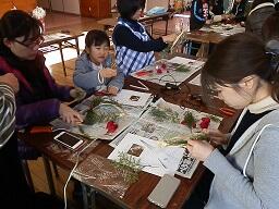【講師の方と参加者のみなさん】 【今回はこんなリースを作ります】 【先生方も熱中しています】