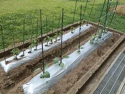 【2年生:ミニトマト の栽培です。早く実をつけないかな? 】