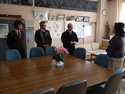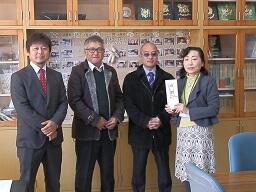 【贈呈の様子】 贈呈の写真を校長室に飾りました。