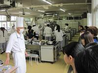 その後、調理科などを見学し、トータルエステティック科ではフットスパ、ヘッドスパを体験しました。