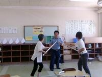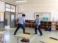 不審者対応の研修を行いました。講師を須木駐在所巡査部長の岡本様にお願いし、話をしていただきました。基本的な心構えから通常時の対応の仕方、不審者が侵入した時の対応など多くのことを学びました。また、学校には刺股が常備してありますが、普段使うことがないため、刺股の使い方も学びました。