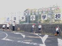 学校が始まってすぐに大きな台風10号が来ました。進む方向もはっきり定まらず、しかも速度が遅いことから、学校は3日間の臨時休業を強いられました。学校での生活リズムを整えたい時期でしたが、今日から仕切り直しです。今日は読み聞かせの日でしたが、全校児童で学校の片付け清掃を行いました。校庭や運動場にたくさんの落ち葉がや枝が散乱していたので、みんなで片づけました。
