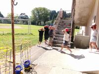始業式の日にPTA奉仕作業がありました。2学期から気持ちよく子どもたちに勉強に集中してもらおうと2学期始まりと共に行いました。午前中に商工会女性部のみなさんも草取りをしていただき、児童はそれ以外の場所の草取りを中心に行いました。保護者のみなさんは、教室の児童が手の届きにくいところや学校周辺の草刈をお願いしました。