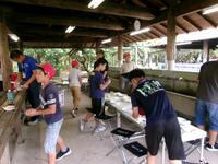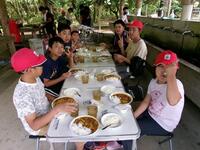 次の日は、カレーづくりの飯盒炊爨を行い、火おこしを行いましたが、なかなかうまくつけることができませんでした。料理はみんな手際よく行い、飯盒での御飯もカレーも上手にでき、みんなでおいしく食べました。