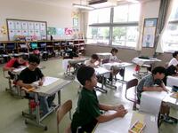 6月7日(金)体力テストを行いました。それぞれ、異学年の班に分かれ長座体前屈や反復横跳び、ボール投げや50m走などを行いました。全体的には、体力テストは良いほうですが、学年差や個人差はあります。その中でも今年は、「握力」や「立ち幅跳び」などに力を入れ、Tスコア50以上をめざしたいところです。さて、結果は?