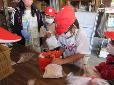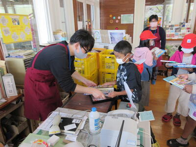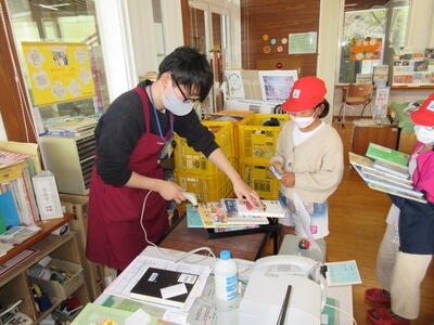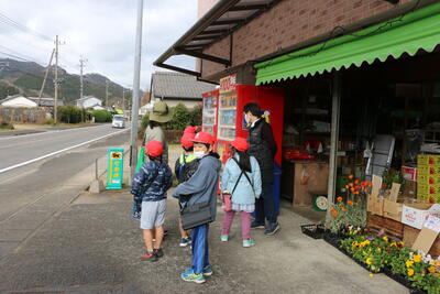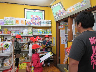 10月26日(水)に2年生6人が須木のまち中探検をしました。「ファミリーショップたじり」さんや「JAガソリンスタンド」さん、「プチパリ」さんにお邪魔しました。お店に展示してある商品の説明や袋詰め体験、ラベラーでの値札付け体験もさせてもらい、貴重な体験をしました。どこに行っても元気のよいあいさつができ、お褒めの言葉も頂きました。ご協力して頂いた皆様に感謝します。