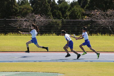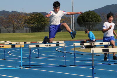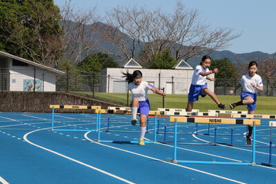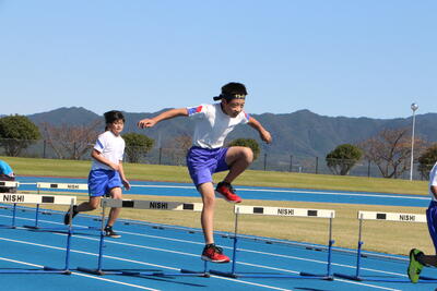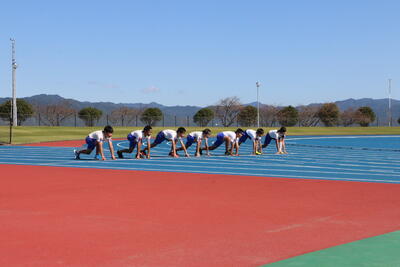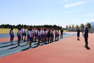 10月26日(水)に6年生の陸上記録会が行われました。今年度は、小林市内の学校を区切って、分散開催となりました。須木小学校は、東方小学校、永久津小学校と3校で行いました。どの競技も一生懸命に行い、力を出し切りました。最後に100m走のスタート地点で記念撮影をしました。
