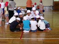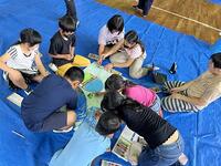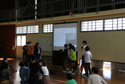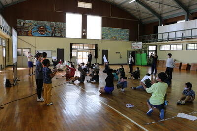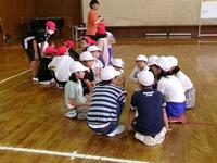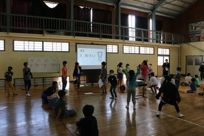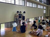 6月14日(水)に「みんなで〇〇する日」を行いました。企画したのは6年生です。6年生で何を企画すればみんなの絆が深まるか考え、話合いを行い、2つのゲームを考えました。チームは先生方を交えた異学年で4チームを編成し、初めにタグベルトを取り合って競うゲームと2つ目は〇✕ゲームを行いました。どのチームも頑張り、大きな歓声が体育館中、学校中に響き渡りました。40人の絆が深まったひとときでした。