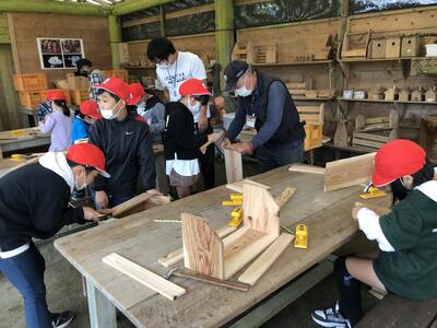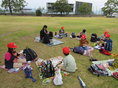 11月1日(火)は秋の遠足でした。1・2年生は閉校となった鳥田町小学校に行ったり、すきむらんどやまちなか松栄に行ったりしました。最後に総合運動公園で昼食でした。3・4年生は、ひなもり台県民ふれあいの森やオートキャンプ場の広場に行き、木工工作で本立てを作りました。みんな上手に本立てができました。何の本をならべるのかな?それぞれ楽しい遠足となりました。