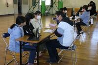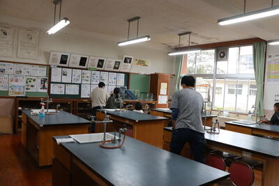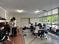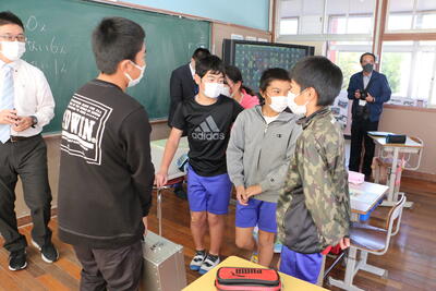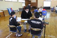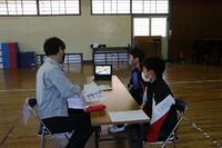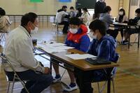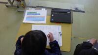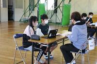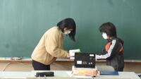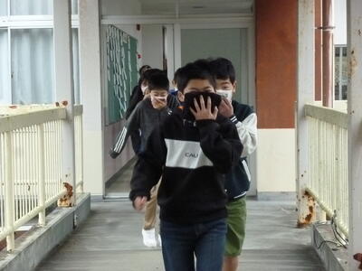 今日の2校時に火災による避難訓練を行いました。火元は理科室を想定し、どのように避難したらよいかを考え、訓練を行いました。煙を吸い込むことのないように口にハンカチや布、マスクなどで覆い、できるだけ低い姿勢で避難をしました。火災の時に発生する煙について学ぶために「けむり体験」を行う予定でしたが、消防署(分遣所)の都合で今回はできませんでした。訓練後は、教室で消火器の使い方を動画で確認したりしました。
