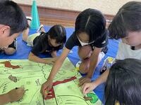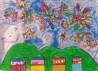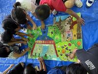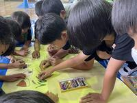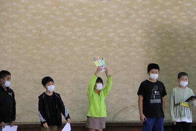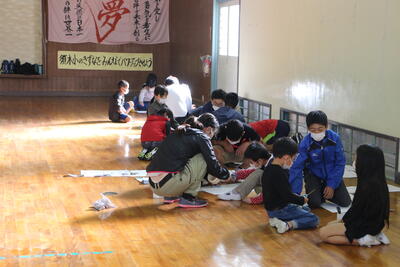 夏休み前でしたが、今年度2回目の「みんなで〇〇する日」を行いました。これまでは、クイズや運動などを行ってきましたが、全校児童を4グループに分けて、須木地区の特色を全員で描きました。企画したのは放送委員会です。