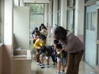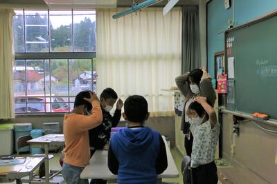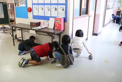 9月1日に各学級で地震についての行動の仕方について学びました。今日は、その学んだことを実際に訓練する日でした。朝の「すきるタイム」の時間に先生たちが教室にいてもいなくても、緊急放送が流れた時に児童自身で行動できるかの訓練をしました。6年生は自分たちの教室以外の場所にいて緊急放送が流れました。最後の振り返りの中で、少ない人の中で地震が起きた時に少し不安になったと感想を述べていました。いつ、どのようなときに地震が起こるかわかりません。自分で考え、行動する力をつけたいと思います。