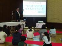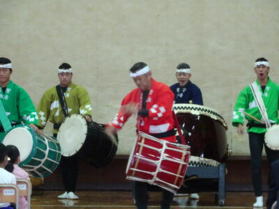 記念講演は、橘太鼓「響座」さんの演奏と座長である岩切邦光さんのお話しでした。演奏は、内閣総理大臣賞を受賞された皆さん(小・中・高校生)の素晴らしい演奏でした。子どもたちも体全体で太鼓の音を感じ演奏を聴いていました。児童や先生方も実際の太鼓をたたかせてもらいました。最後に夢に向かってがんばる素晴らしさについて話をしていただきました。素晴らしい演奏とお話しでした。ありがとうございました。