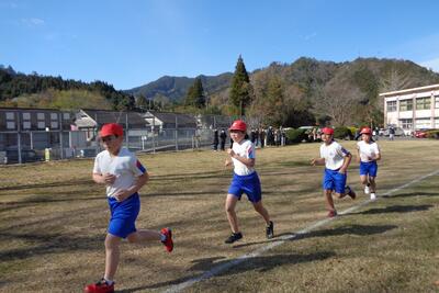 本日7日は霜が降り、大変寒い朝となりました。3校時に長距離走大会を行いました。気持ちのよい青空の下、多くの保護者の方も参観していただき、児童も全員完走することができました。これまで朝の「すきるタイム」の時間に長距離走大会の「準備」をしてきました。それぞれの目標タイムを達成するために強い「意志」でがんばりました。大会の運営はすべてすくすく委員会が行いました。