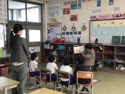 1月27日(金)の朝に「あすなろ会」による読み聞かせを行いました。今回の絵本は「もちもちおもち」「すうがくでせかいをみる」「マックマウスさん」「バケツのこおり」「かいじゅうランドセル」「いたいのいたいのとんでいけ」「もったいないばあさん」「まほうのくに」を読んでいただきました。