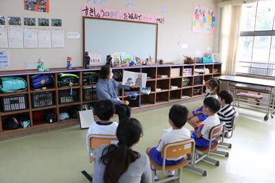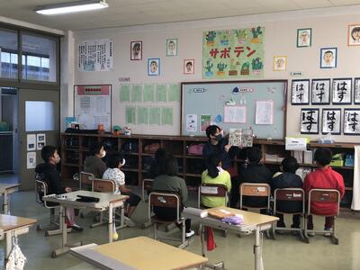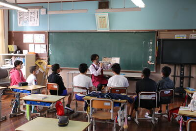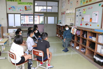 10月14日(金)の朝にあすなろ会の皆さんが「絵本の読み聞かせ」に来て頂きました。本や絵本を読むにはとてもよい季節になりました。児童も集中して話を聞いています。それぞれ2冊の絵本を読んで頂きました。面白い話ばかりでしたので児童もまた、たくさん読んでほしいと思います。